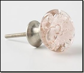 before i left town last week i picked up some cabinet knobs from anthropologie for the antique buffet that we are using as harper’s changing table. i also wanted to purchase some of the regular door knobs that they had, but they were really pricey. i knew that brock (jenny’s husband & soon-to-be harper’s father) would never give in to that idea. i’m having a hard enough time convincing him that we need to exchange the ceiling fan for a chandelier. i keep telling him that sweet little baby girls really need chandeliers in their rooms. i think he’ll give in before harper gets here. at least i hope he will.