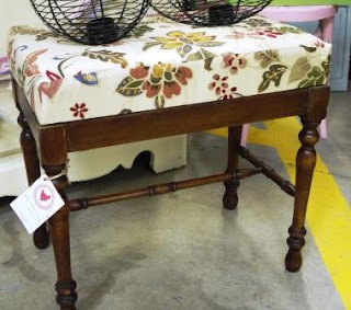 Some projects I didn't have to do too much to...the wood on this next little chair was so pretty that I just cleaned it and polished it, and I replaced the seat fabric (it's the same fabric I used for this bench).